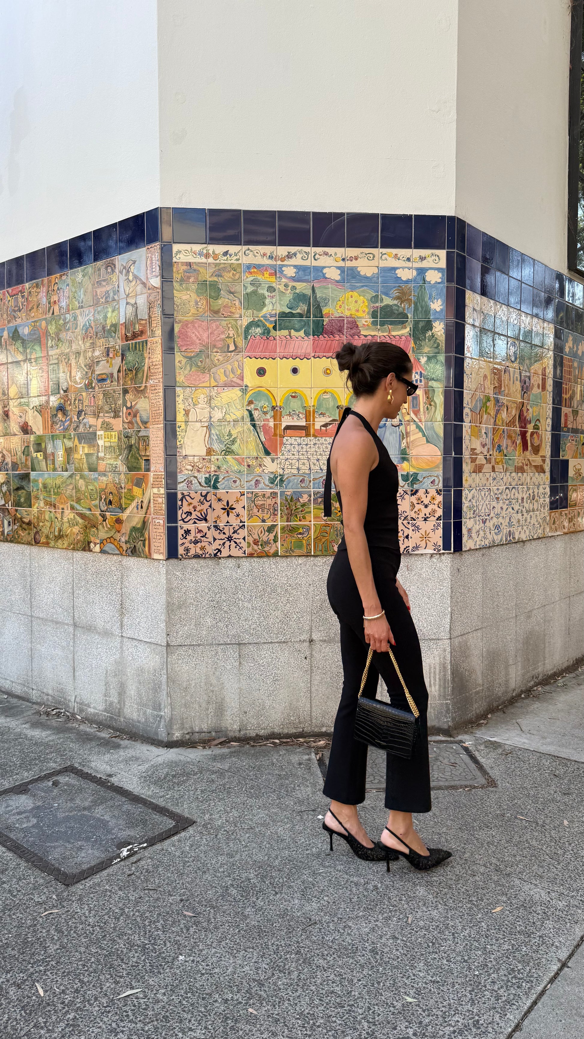 The Capri Flare Pants are crafted from soft, stretchy crepe fabric that smooths the body while allowing easy movement. Designed with a high waist and subtle flare, they elongate the silhouette and create a clean, refined shape.
