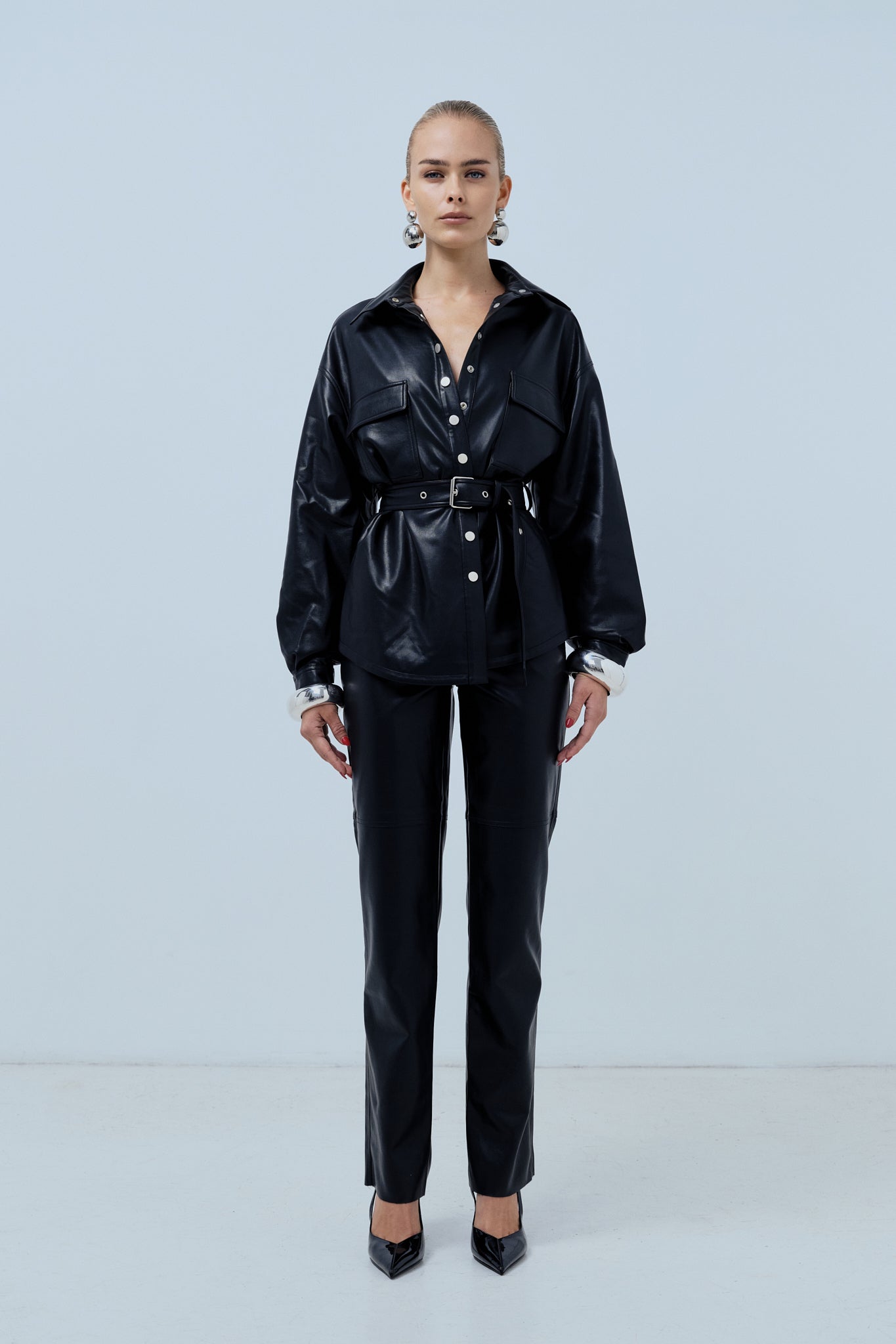 The Vega Pants feature a medium-rise waist and straight leg silhouette that flatter the figure while offering subtle stretch for ease. The lace-up front detail adds a modern edge to a timeless shape.